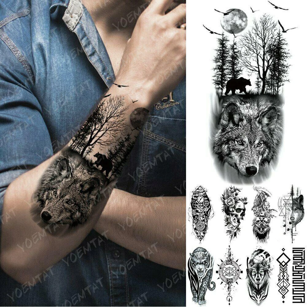 Tatuajes Temporales Impermeable Brazo Cuerpo Leopardo Lobo Tatto Falso Pegatinas Ebay
